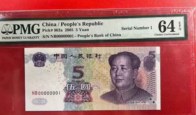 首先是1999年版5元纸币,作为第五套人民币的首发版本之一,它已经逐步退出日常找零体系,在流通中越来越稀少。虽然单张普通全新品价格已上涨至20元左右,但在整个收藏市场中,这还算不上高价。但若是遇到一些稀有冠号或特殊号码,比如早期补号或尾号全0、全1、连号等“麒麟号”,其价格就完全不同了。尤其是“00000001”这类开门号,被称为“号码之最”,哪怕是5元面额,在市场中也能拍出五位数的高价。